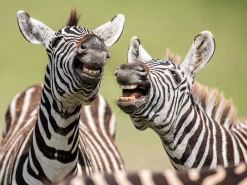 These zebras are natural-born jokers, always ready to entertain. Whether it's their playful interactions or their perfectly timed poses, they know how to put on a show. This photo captures their sense of fun and camaraderie, reminding us of the joy that comes from simply being ourselves.